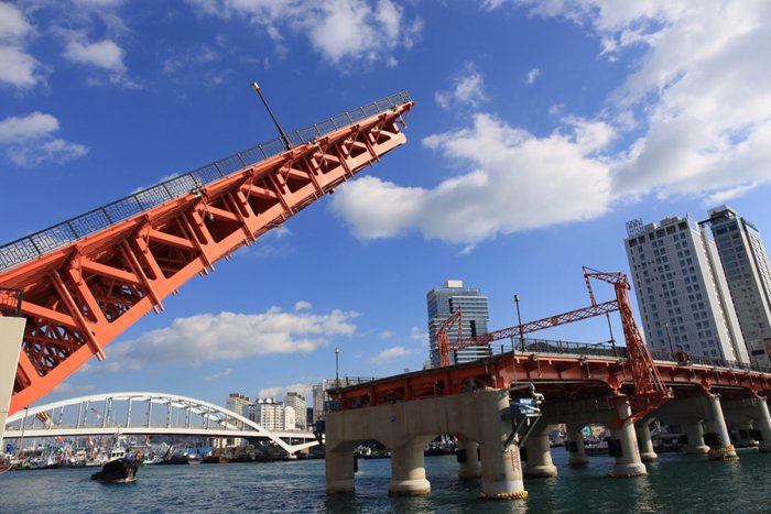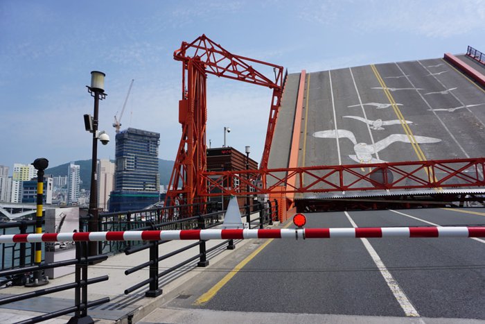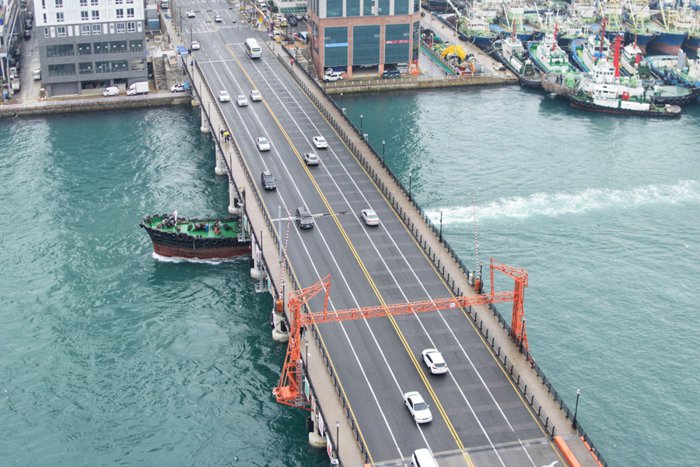 The Yeongdodaejeo Bridge connecting the Jeonggu and Yeongdo-gu districts was the first bridge to connect the mainland with the island in Busan. The bridge was raised to allow ships to pass between the southern and northern ports, and it rises from two to seven times per day. When the bridge was first built, Many people would gather to watch the bridge rise into the sky, and it has since become a famous landmark in Busan.