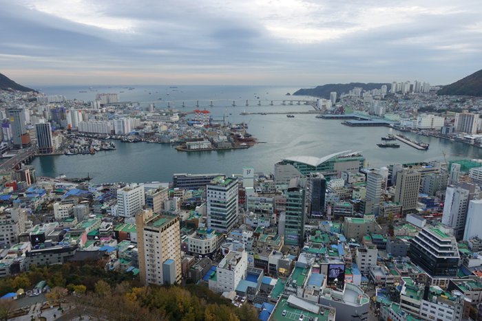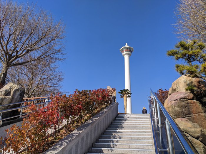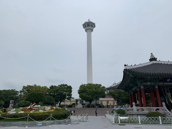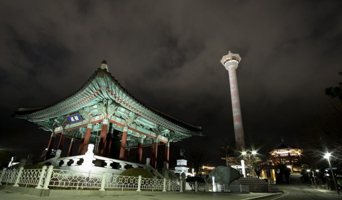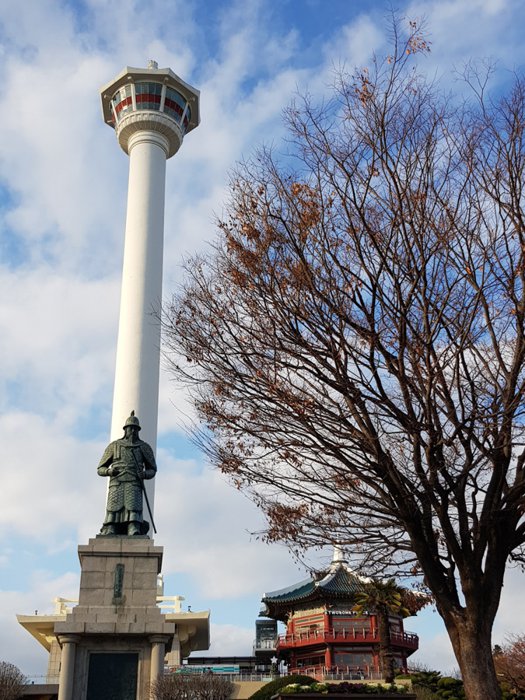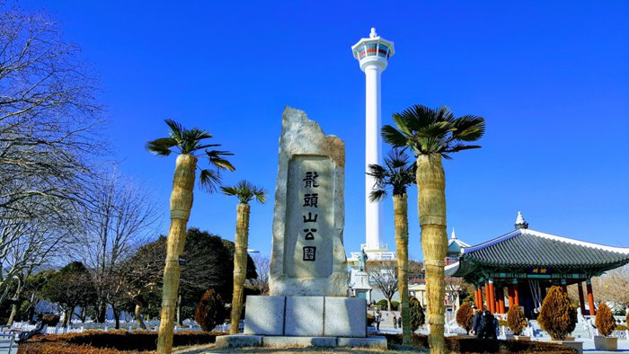 The 49-meter-high Yongdusan Mountain is located in downtown Busan. It is one of the three famous mountains in the city. It overlooks the sea through a dense pine forest. Its peak is shaped like a dragon's head, protecting the area from foreign invaders. The mountain had Shrines to mountain gods built by the Japanese before liberation, and now home to a variety of monuments, including Yeongdusan Park, which offers a stunning view of Busan Port and the surrounding landscape.