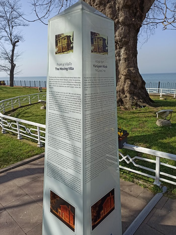 Urian Palace, Walking Palace, or Atatürk Palace are all names for one of the most beautiful and ancient palaces in Turkey, which is a wooden structure framed by a square plan, surrounded by columns, and there is a small room, living room, and meeting room overlooking the sea and covered with crystal glass on the ground floor of the palace, which is located Its entrance door is to the east, and the other rooms are spread out on the upper floors. The palace has a distinctive story, as it was located in another place in the city and the branches of a neighboring tree extended to reach its upper floor, so Ataturk ordered the transfer of the palace building instead of cutting down the tree.