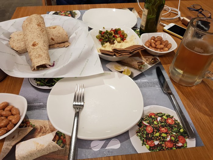 Zaatar w Zait, Wafiq Sinno Road, is an international Lebanese restaurant that specializes in serving a wide variety of delicious popular foods, such as manakish and delicious pastries. Some international meal items are also available, such as burgers, and there are also several types of delicious salads and appetizers.