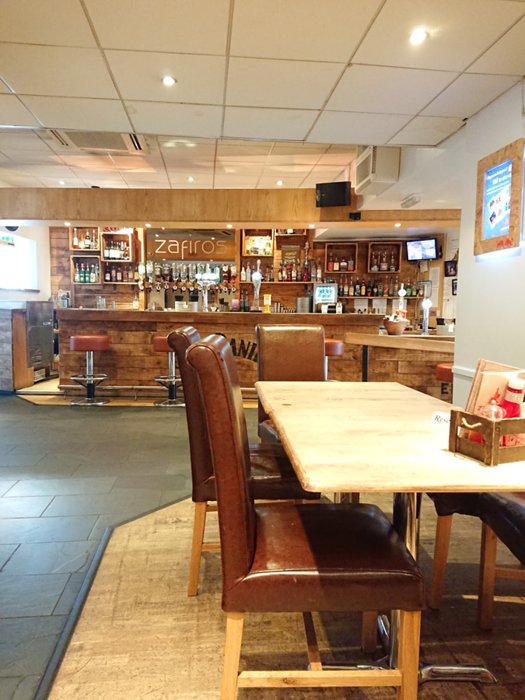 Zafiros Restaurant and Bar offers a variety of appetizers, salads, side dishes, and main dishes from the local English cuisine, which usually consist of pieces of chicken or meat cooked with grains and vegetables. It also offers some fast food such as burgers and fries, in addition to desserts and various drinks.