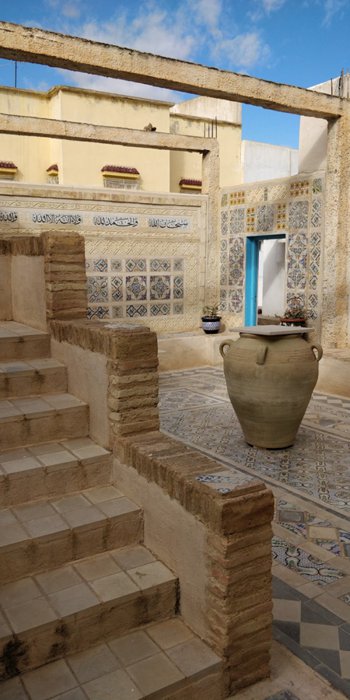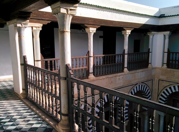 The two-storey Zawiya Sidi al-Ghariani dates back to the fourteenth century AD, and it is a mosque that was initially built as a school by a Kairouan scholar named al-Jadidi, and enjoys black and white colored arches, marble columns with carved capitals, a Moroccan-style ceiling, wood carvings, and other interesting features. Beautiful Islamic character.