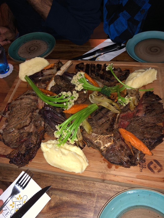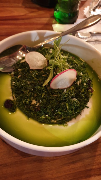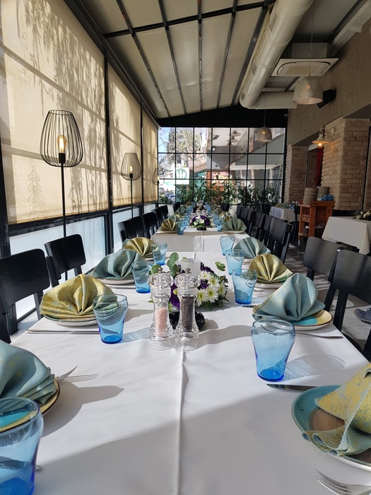 Middle Eastern and European restaurant with elegant modern décor and a comfortable and calm atmosphere. The restaurant offers many delicious Middle Eastern and international dishes presented in an elegant modern way, including pizza dishes, burgers, fillet meat dishes and seafood dishes, in addition to maqlouba dishes, Aleppo kebabs, meat, cheese, or musakhan with dough, which Served with many salads and appetizers. The restaurant has a simple and nice decor, suitable for family and friends atmosphere.