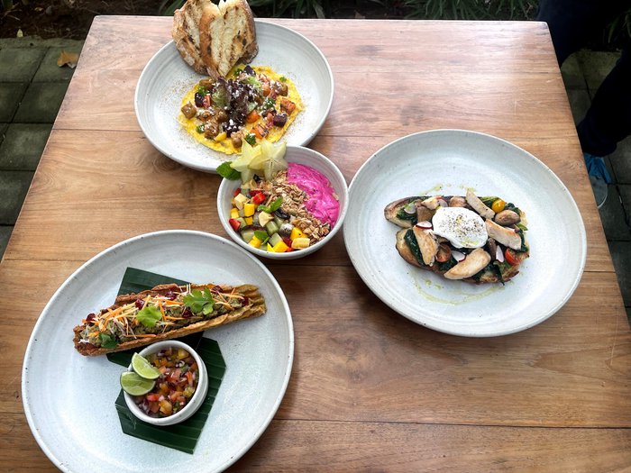 Known for serving the best avocado sandwich on toast in Canggu, Zen Café has stunning architecture with tropical surroundings covered in palm trees and bamboo, and offers a menu that includes many international dishes prepared using local ingredients such as tacos.
