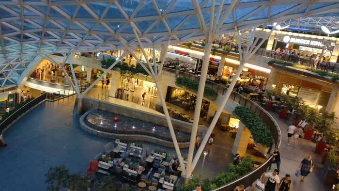 commercial, office and entertainment complex in the center of Warsaw, Poland, located next to the Warsaw Central Railway Station. It was opened on February 7, 2007. The center hosts the first Hard Rock Cafe in Poland as well as the first Burger King restaurant to compete with McDonald's in Poland. Visitors can enjoy watching a movie in Cinemaplex. There are more than 30 restaurants and bars spread over 5 floors. As for the central architectural part, it is a 10,000-meter-long glass dome equipped with a special mechanism to prevent sunlight.
