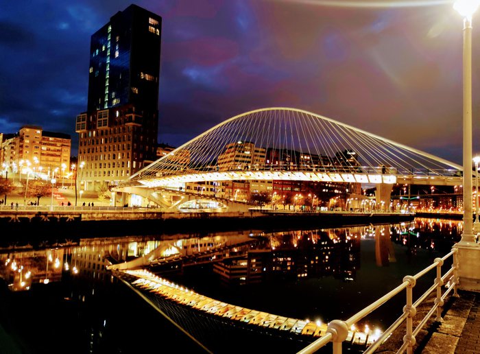 The history of the Zubizuri Bridge dates back to 1990, when Santiago Calatrava designed a structure that would connect the Ensanche district of Bilbao with Calle Campo de Volantín, and the area is known as a pedestrian area because it provides a pleasant stroll Along the Nervion River, and visitors to the city constantly visit this landmark due to the beauty of the scenery and the pleasure of walking in it day and night.